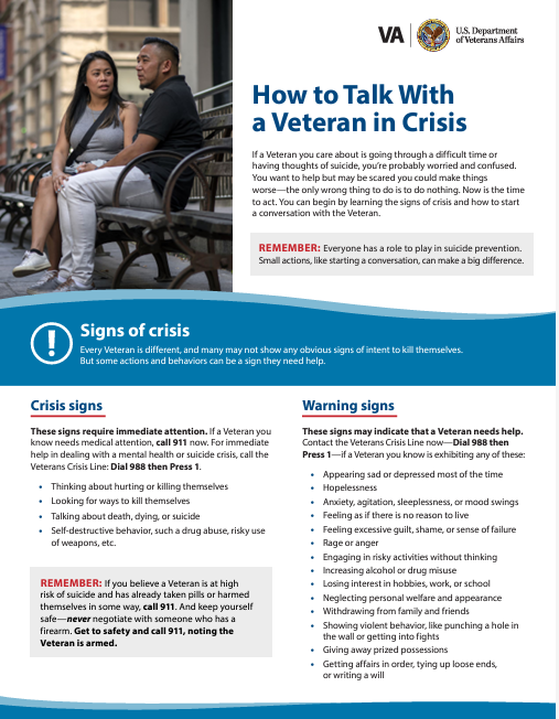 You don’t need to be an expert to make a difference—support Veterans by sharing or using the downloadable resources and information below. This page will be continually updated as new materials become available.